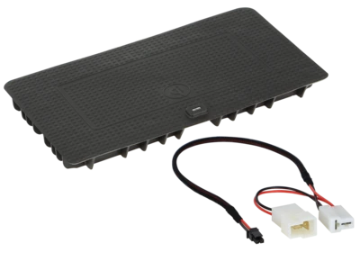 Dieses Ablagefach unterstützt das kabellos induktive Laden von Smartphones mittels INBAY.
