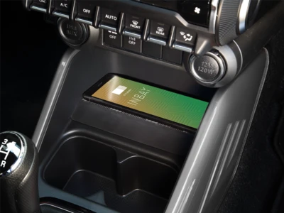 Dieses Ablagefach unterstützt das kabellos induktive Laden von Smartphones mittels INBAY.