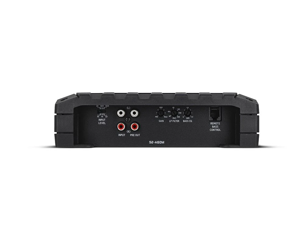 Der Mono-Subwoofer-Verstärker S2-A60M der aktuellen Generation der S-Serie macht sehr leicht großartige Bässe in ihrem Fahrzeug zu erzeugen. Er liefert bis zu 600 Watt RMS-Leistung bei 2 Ohm. Ein variabler Bass-Boost für noch mehr Musikerlebnis ermöglicht es Ihnen, mehr Kraft und Ausdruck in die tiefen Frequenzen zu bringen. Sie können sogar eine optionale kabelgebundene Fernbedienung hinzufügen, um den Basspegel von ihrem Vordersitz aus zu steuern.