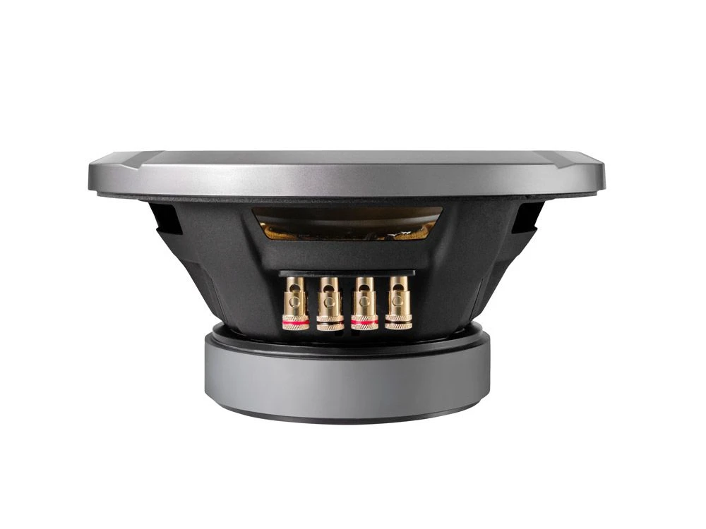Der 25 cm-Subwoofer (10-Zoll) S-W10D4 ist für eine Leistung von bis zu 600 Watt RMS ausgelegt. Der neu gestaltete Konus aus Kohlefaser und Polypropylen sorgt für geringes Gewicht und Stabilität, während die H.A.M.R. Gummisicke (High Amplitude Multi-Roll) für maximale Auslenkung und beeindruckende Kontrolle sorgt. Praktische Steckbrücken machen es einfach, Ihr System optimal von 2x 2 Ohm auf 1x 4 Ohm Impedanz (in Reihe) oder von 2x 2 Ohm auf 1x 1 Ohm Impedanz (parallel) anzupassen. Dieser Subwoofer eignet sich gleichermaßen für ventilierte und geschlossene Subwoofergehäuse. Damit können Sie Ihr Gehäuse nach eigenen Wünschen für einen kräftigen, tiefen oder straffen und präzisen Bass abstimmen.