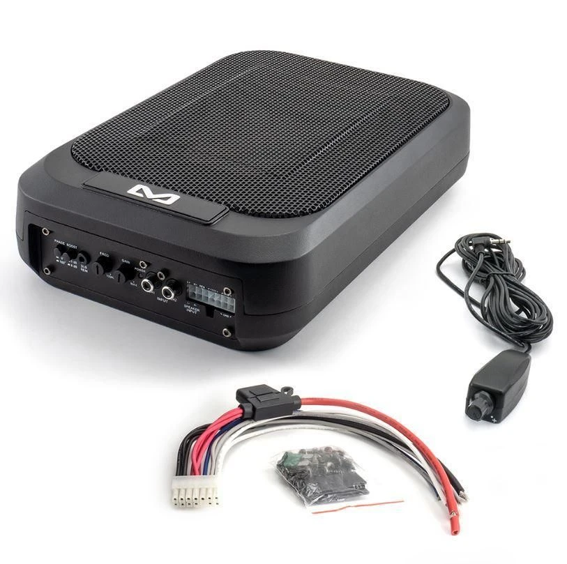 Ultraflaches Aluminium-Gehäuse mit Hochleistungs-Verstärker und einem 7″x9″ Rechteck-Chassis. Dieser Subwoofer liegt voll im Trend, weil er sich gut in beengten Verhältnissen, z.B. unter den Vordersitzen, unterbringen lässt. Der entscheidende Vorteil dieser Konstruktion liegt auf der Hand: Dank seiner kompakten Bauform und seiner High- und Low-Level-Eingänge findet dieser Aktiv-Subwoofer Anschluss an jedes vorhandene Soundsystem. Der ACITIVE9-SQ schaltet sich durch die „Auto Turn-On“ Funktion automatisch über die Lautsprechereingänge ein.