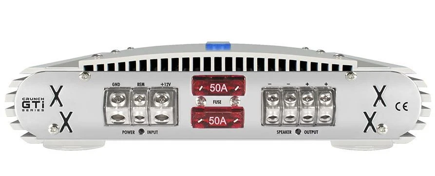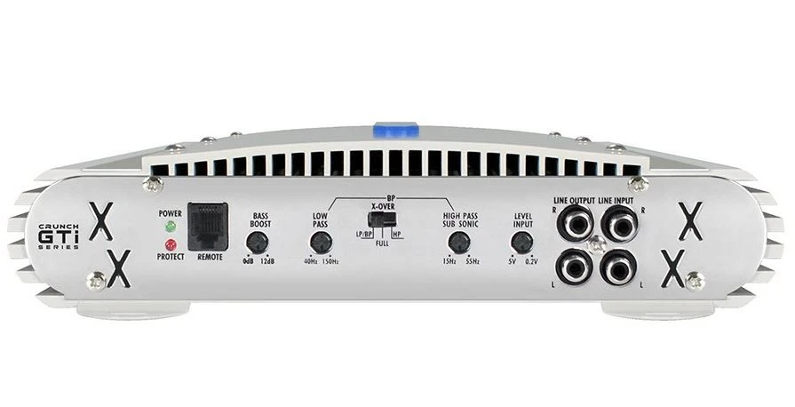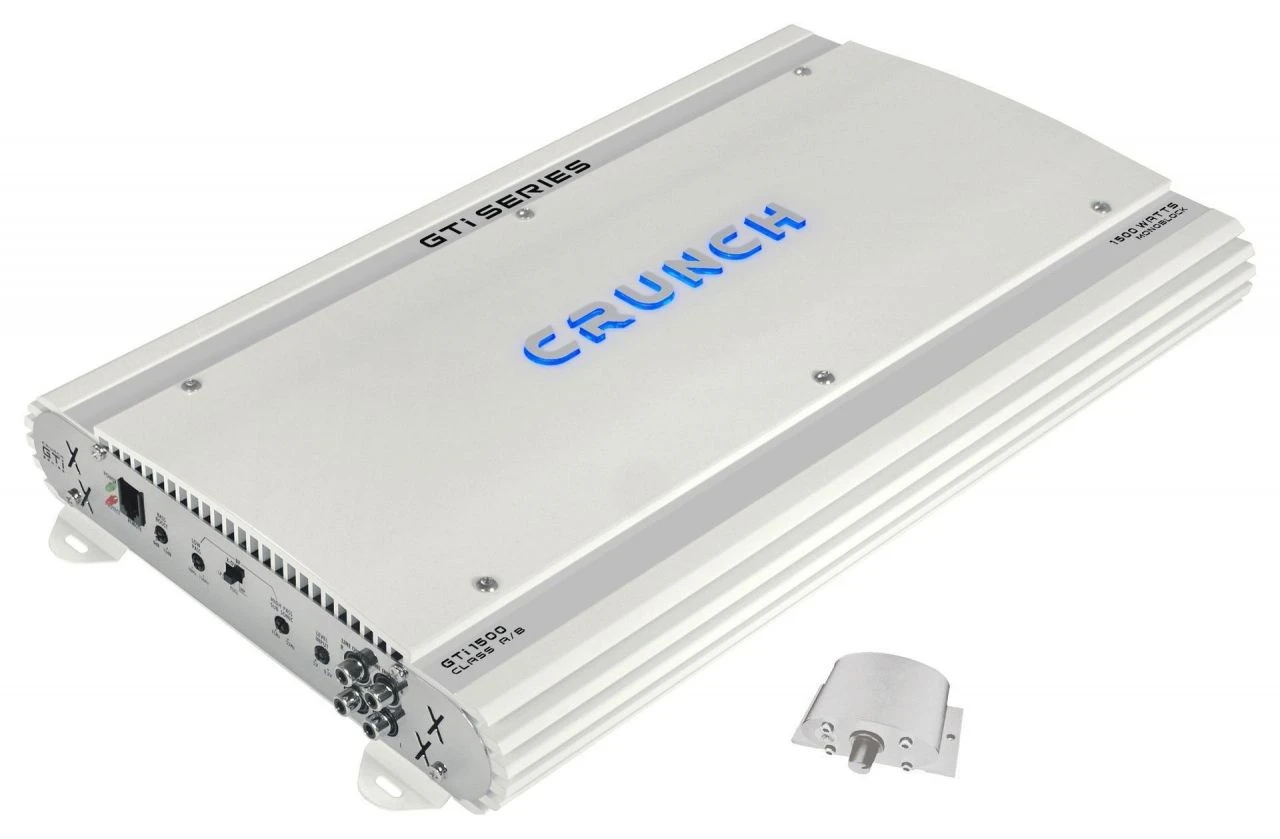 Mit den schicken GTi Amps beweist CRUNCH einmal mehr, dass die Kombination aus gutem Design und überzeugender Performance mit perfektem Preis-Leistungsverhältnis kein Ding der Unmöglichkeit ist. Die in Hochglanz-Weiß lackierten Amps mit blauer Logobeleuchtung sind an sich schon echte Hingucker, aber auch Klang und Leistung kommen nicht zu kurz. So kommen auch in dieser Serie hochwertige Toshiba High-Speed Endtransistoren und stabile Mosfet-Netzteile zum Einsatz. Als Plattform diente die bewährte Technik der vielfach ausgezeichneten GTS-Serie, welche für die neuen GTi Modelle weiter überarbeitet und leistungstechnisch verbessert wurde. Mit dem Modell GTi1500 legt CRUNCH noch eine Schippe drauf und bietet eine 750 Watt RMS (1500 Watt max.) starke Monoendstufe, die für Subwooferbetrieb bis 2 Ohm ideal ist.