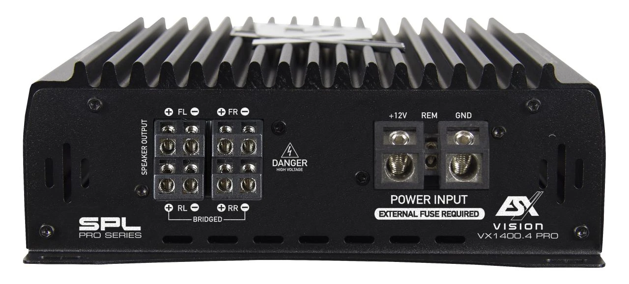 In Q1.2023 wird ESX mit der VX1400.4PRO zusätzlich eine 4 x 350 Watt RMS starke Class D Endstufe für sehr potente Front- und Hecklautsprecher mit in das Programm nehmen.