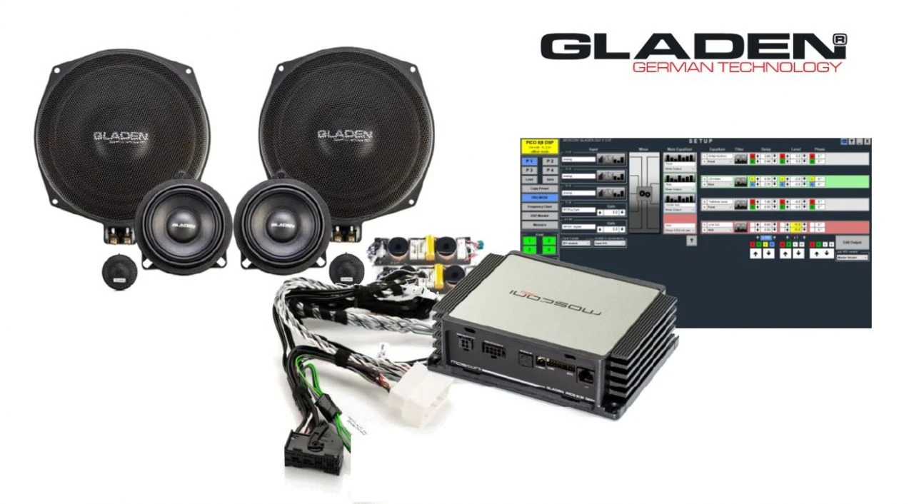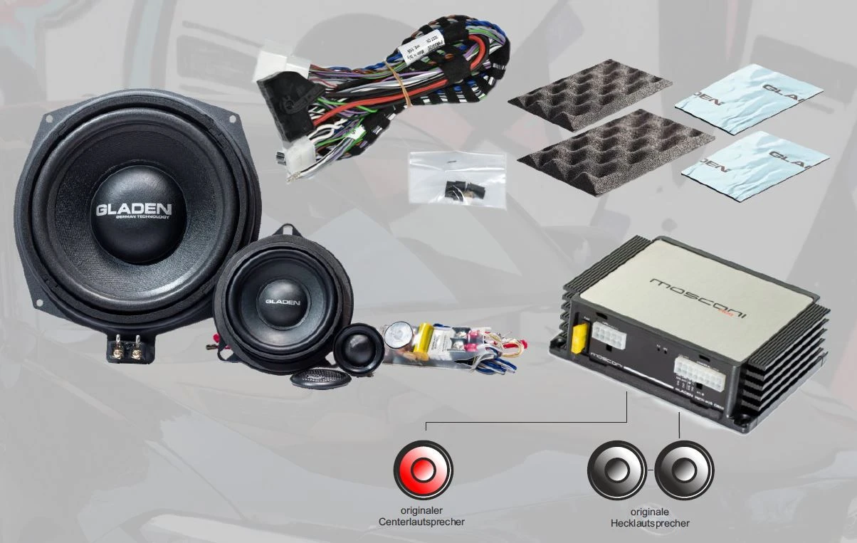 - Premium 3 -Wege Lautsprecher-System (Front): Gladen Audio GA-ONE201BMW