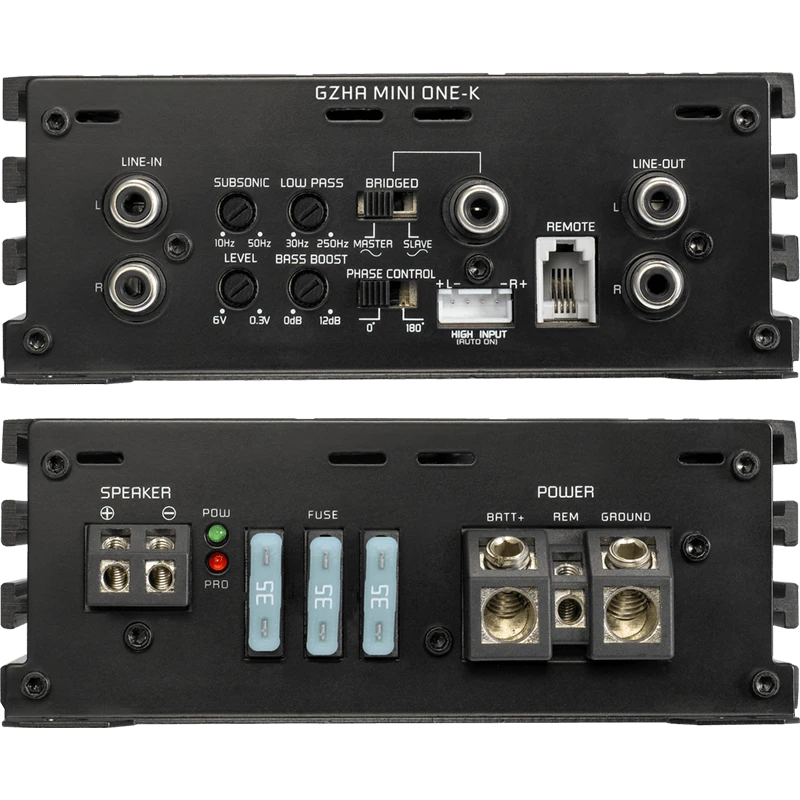 1-Kanal Subwoofer-Verstärker mit hoch effizienter Class D Schaltung, integrierter Aktivweiche und kompakten Abmessungen