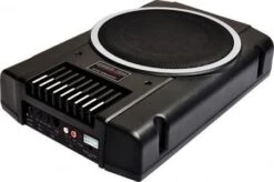 20 cm flacher Aktiv-Subwoofer in Kunststoff-Spritzgussgehäuse mit integriertem Verstärker und Hochpegeleingang