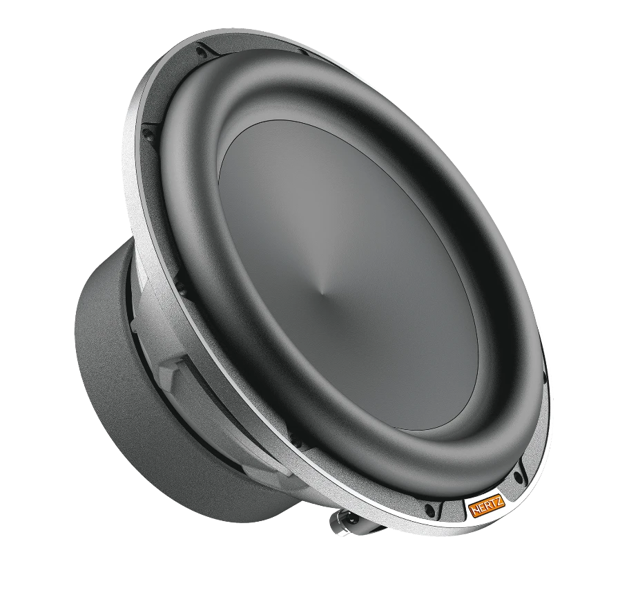 Herausragende Leistung bei kompakter Größe – das ist das Ziel der Audio-Subwoofer Mille PRO für das Auto. Die Stärke der Forschungs- und Entwicklungsabteilung ist ihr Know-how aus der Entwicklung von Mille Legend. Das F&E-Team hat den Herstellungsprozess optimiert, um die “Hertz Sound-Erfahrung” einem breiteren Publikum zugänglich zu machen, indem es die Technologien und Materialien des Aushängeschilds der Produktlinie in Teilen übernommen hat. Die Lautsprechermembrane des MP 250 D2.3 wird mit dem gleichen Konstruktionsverfahren hergestellt, das auch für Legend verwendet wird:Holzstoff wird unter Beigabe von Mineralpulvern gepresst. Das V-cone®-Profil sorgt für größere Härte, sodass die Lautsprechermembrane als Kolben dienen kann. Das sie ummantelnde Material besteht aus hochreinem IIR-Butylkautschuk. Der Subwoofer Mille PRO wird – wie auch der Legend ML 2000.3 und der Legend ML 2500.3 – unter Verwendung der Boundary Free Surround-Technologie hergestellt, die eine größere Emissionsfläche bei gleichem Durchmesser ermöglicht, sodass höherer Schalldruck erzeugt werden kann. Der kompakte, nicht resonante Korb mit 6 Speichen aus einer Aluminiumlegierung, der mit dem des Spitzenmodells ML 2500.3 identisch ist, trägt zu der mechanischen Dämpfung des Subwoofers bei und ist dabei absolut sounddurchlässig. Die 4-schichtige 65-mm-Schwingspule ist mehr als 60 mm hoch und in einem TIL-P-Abbiegebock gespult, was für hohe lineare Verschiebung sorgt. Die Konfiguration einer Impedanz von 2 ? + 2 ? durch DVC (duale Schwingspule) macht den Subwoofer so flexibel, dass er mit jedem Verstärkersystem mithalten kann. Das System der Luftkühlung und Druckentlastung ermöglicht es, auf ein zentrales Loch in der Bodenplatte zu verzichten. Das bringt drei Vorteile: