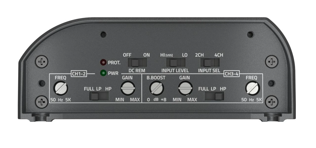 - Crossover-Filter und -Steuerungen auf einer einzigen Seite, um die Kalibrierung zu erleichtern, wenn die Endstufe installiert ist