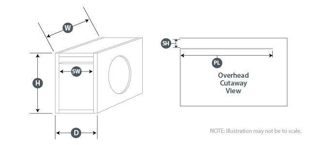 * Bei den oben aufgeführten Empfehlungen für das Gehäuse handelt es sich um Außenmaße, bei denen Material mit einer Dicke von 19 mm (19 mm) verwendet wird. Wenn Sie Material mit einer Dicke von 0,625 Zoll (16 mm) verwenden, ziehen Sie von jeder Abmessung 0,25 Zoll (6,5 mm) ab. Verwenden Sie kein Material mit einer Dicke von weniger als 16 mm, da dies die Steifigkeit des Gehäuses beeinträchtigen kann.