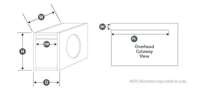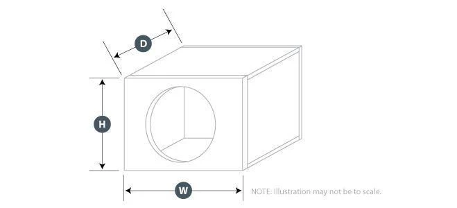 * Bei den oben aufgeführten Empfehlungen für die Gehäuse handelt es sich um Außenmaße, bei denen Material mit einer Dicke von 19 mm (19 mm) verwendet wird. Wenn Sie Material mit einer Dicke von 0,625 Zoll (16 mm) verwenden, ziehen Sie von jeder Abmessung 0,25 Zoll (6,5 mm) ab. Verwenden Sie kein Material mit einer Dicke von weniger als 16 mm, da dies die Steifigkeit des Gehäuses beeinträchtigen kann.