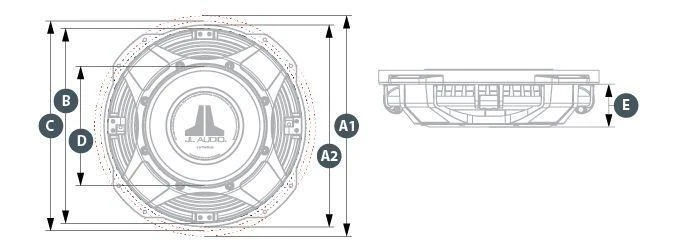 - Gesamtdurchmesser (A) A1: 14,2 Zoll / 361 mm A2: 13,0 Zoll / 330 mm