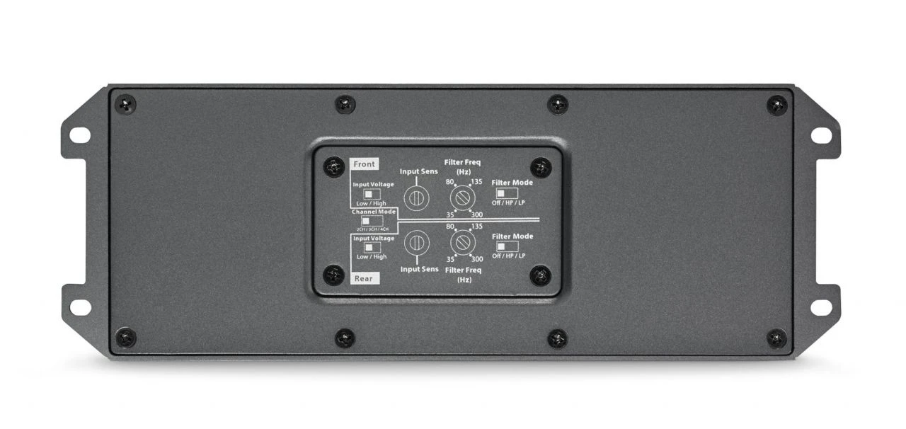Weitere Merkmale sind unabhängige vordere und hintere Frequenzweichen mit wählbaren Vollbereichs-, Hochpass- oder Tiefpassfiltersteuerungen und ein Eingangsbereich mit zwei Bereichen, der einen weiten Bereich von Eingangsspannungspegeln akzeptiert, von Leitungspegel bis hin zu Hochpegel. Power Speaker Level Signale.