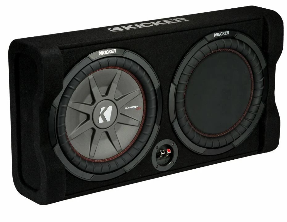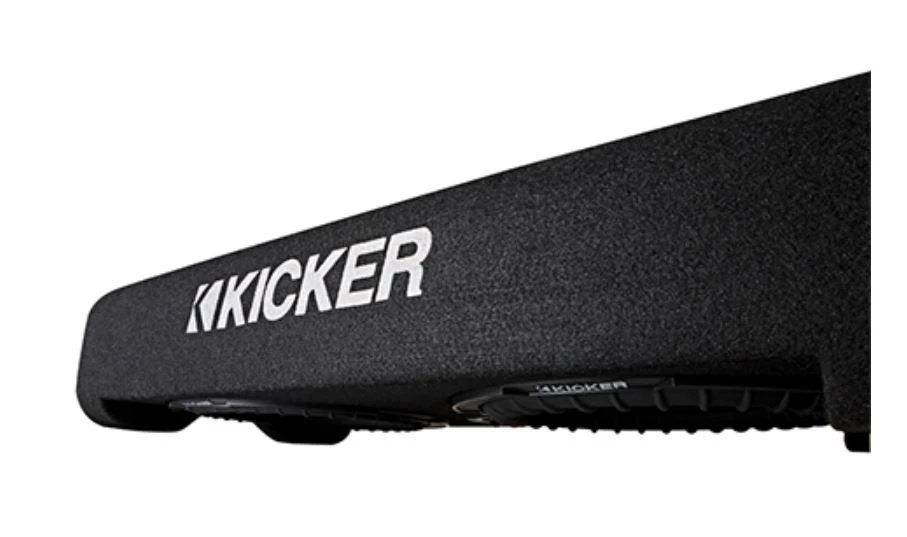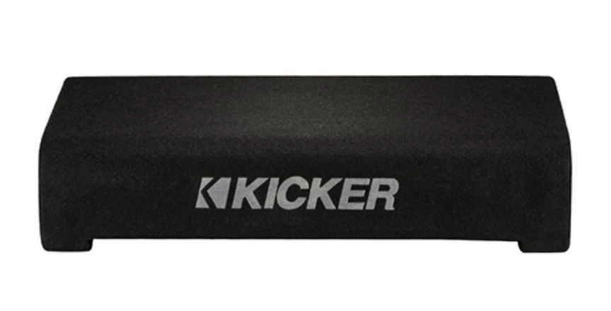 Das CompRT Down-Firing 10-Zoll-Subwoofer-Gehäuse ist mit einem passiven reFLEX Subwoofer und einem KICKER CompRT Subwoofer bestückt, dann mit Teppichboden ausgelegt und mit einem einzelnen 2 Ohm Terminal bestückt.