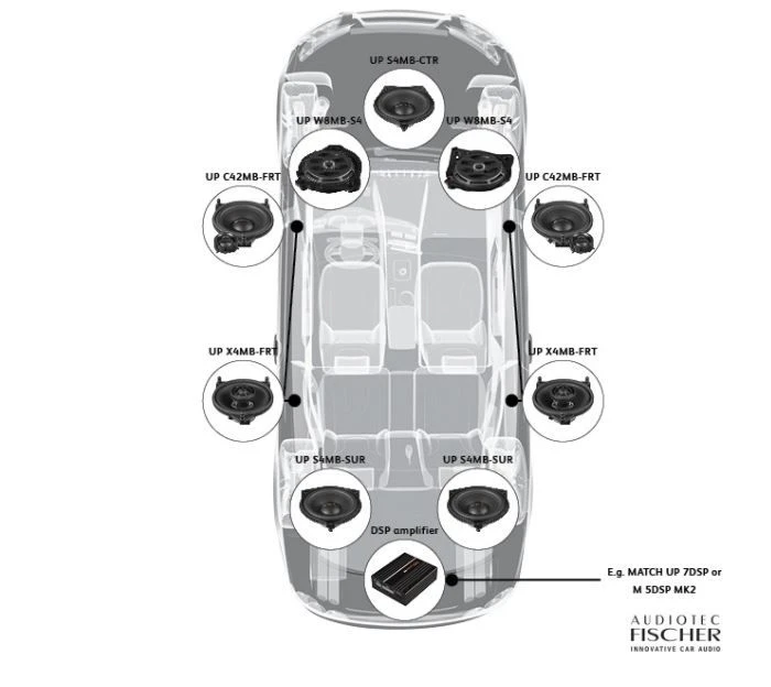 Premium-Fahrzeuge verdienen Premium-Sound – und dazu gehört eine tiefe und druckvolle Bassperformance, die die Basis-Lautsprecherausstattung in den Mercedes-Fahrzeugen schlicht und ergreifend vermissen lässt. Dabei ist die optimale Lösung so einfach – der hochbelastbare 200 mm Woofer des UP W8MB-S4 passt perfekt in die Original-Einbauposition in der Spritzschutzwand auf der Beifahrerseite und liefert genau den Punch, der die Musik zum Leben erweckt und fühlbar macht. Die maximale Performanz offenbart dieser Lautsprecher ganz besonders in Kombination mit einem unserer DSP-Verstärker.