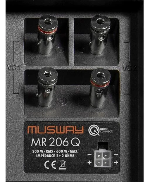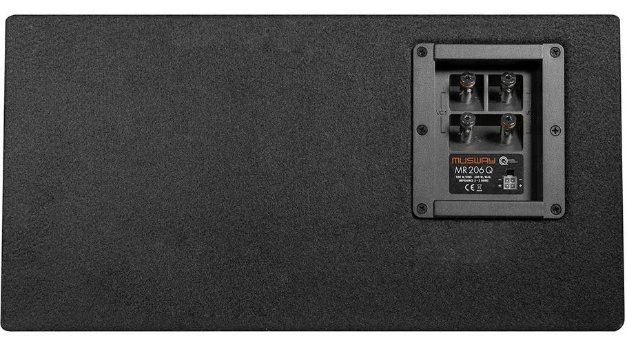Die stabil konstruierten MDF-Gehäuse sind mit hochwertigem schwarzem Teppich bezogen und fügen sich harmonisch und dezent in jedes Fahrzeuginterieur ein. Weiterhin sind ohne Ausnahme alle Modelle mit Quick Connect Anschlussbuchsen ausgestattet und können blitzschnell per optionalem Anschlusskabel beispielsweise an die Musway M6 und deren QUICK CONNECT Port angeschlossen werden. Selbstverständlich können die MUSWAY Subwoofer-Systeme auch konventionell an herkömmliche Push-Pin Terminals angeschlossen werden.